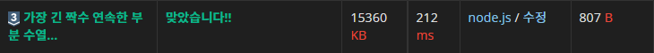 이후 배열의 숫자가 짝수인경우 'sum'이라는 변수를 1개씩 늘려가면서 연속된 짝수가 몇 개인지 파악한다.