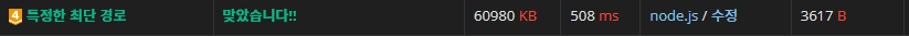 로직은 맞는 거 같은데 틀렸었다. 경로가 없는 경우도 있다는 걸 빼먹었다.