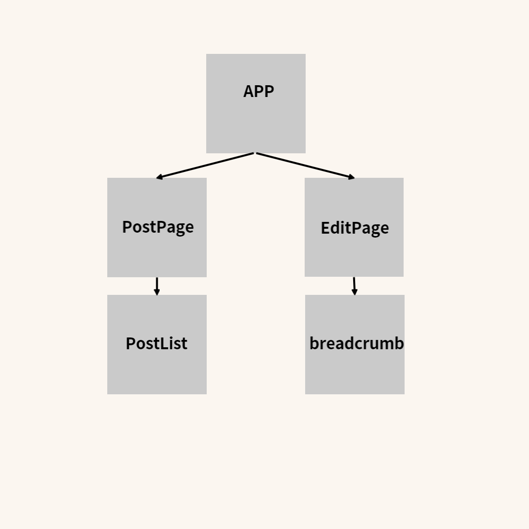 처음 구현할 때 위의 그림처럼 DataFlow를 구현하려 했으나 설계를 철저하게 하지 못해서인지 어느 순간 보니 컴포넌트 이곳저곳에서 Fetch를 사용하고 있었고 PostList에서 사용 중인 열람 중인 문서의 ID를 breadcrumb에서 사용하기 어려운 구조가 되어버렸다. (진짜 설계를 잘하자... 구현하기 전에 생각을 더 해보고..😣)