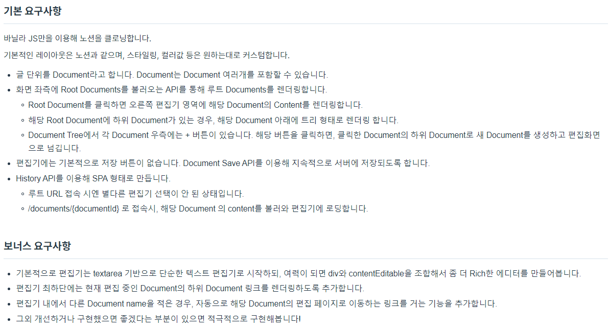 내용은 notion의 기능들을 비슷하게 구현해 보는 것이었다.