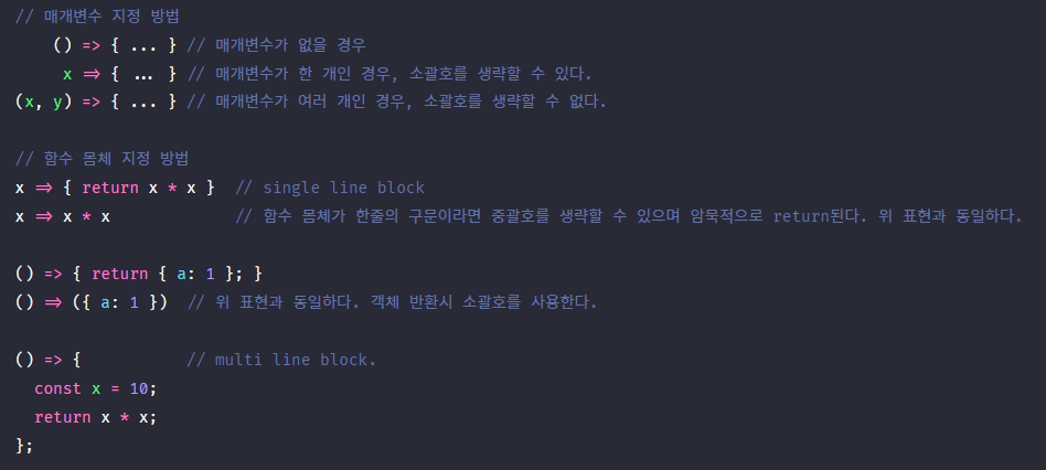 단, 모든 경우에 화살표 함수를 사용할 수 있는것은 아니다.