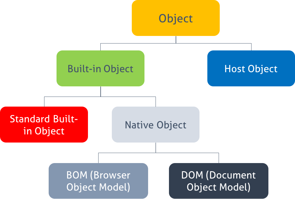 Standard Built-in Objects(표준 빌트인 객체)를 제외한 BOM 과 DOM을 Native Object라고 분류하기도 한다. 또한 사용자가 생성한 객체를 Host Object(사용자 정의 객체)라 한다.